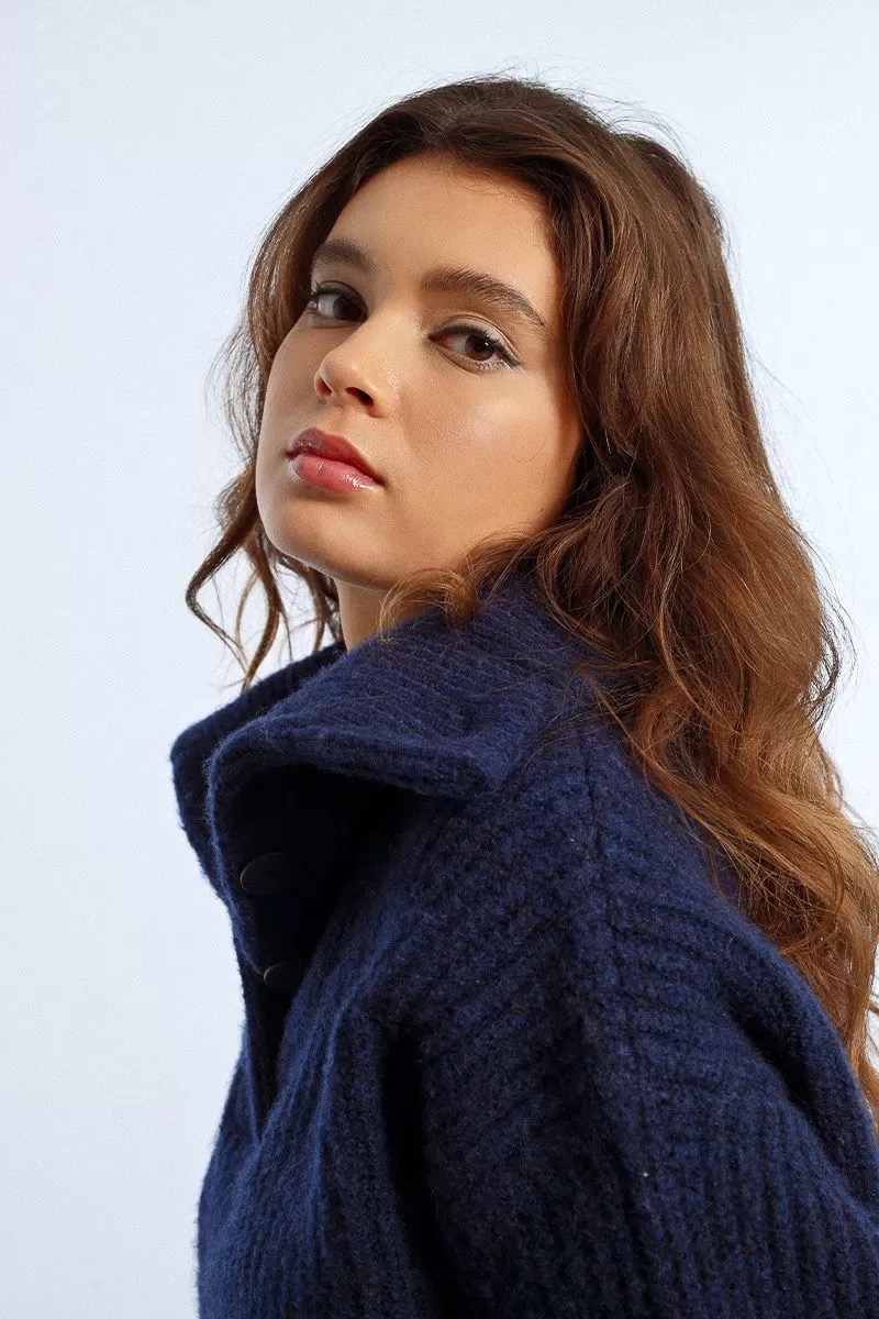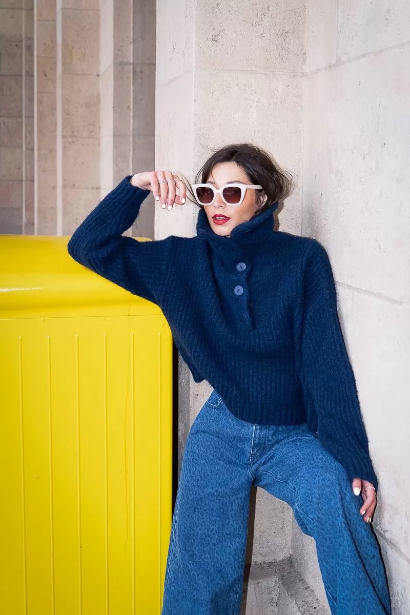 -Wide high trucker collar with buttons