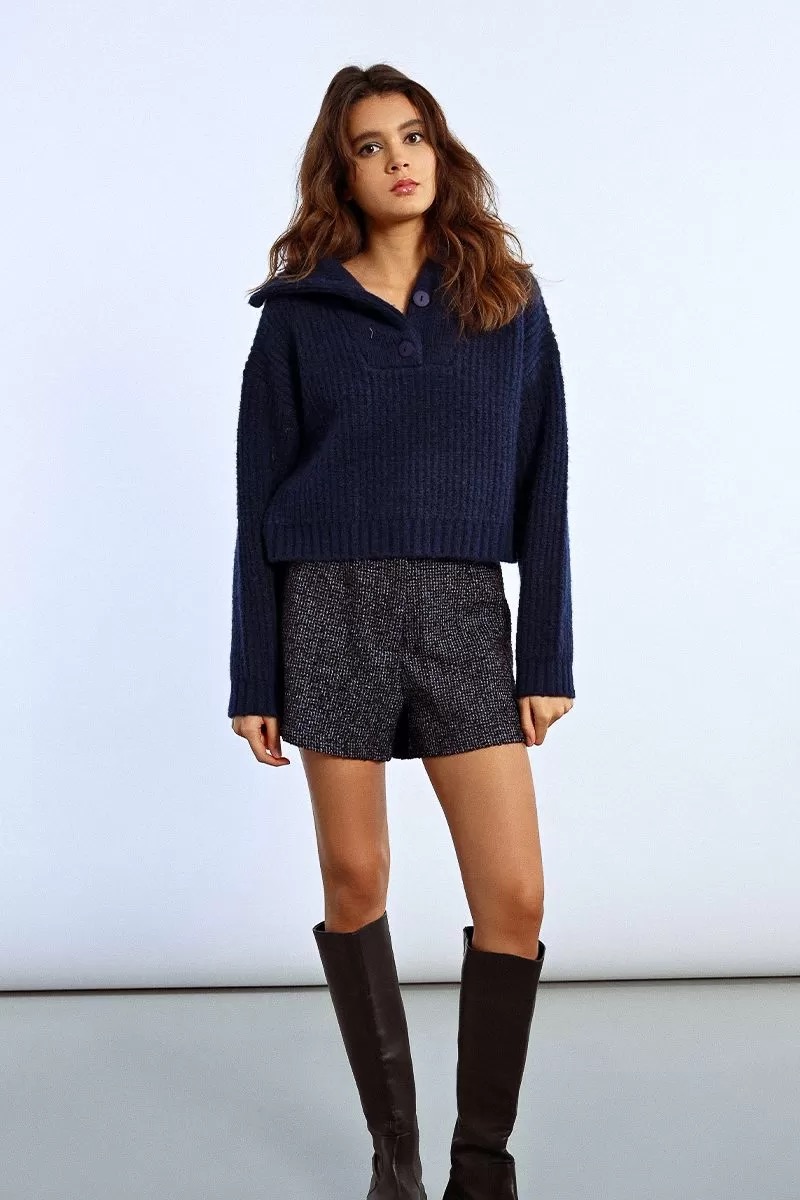 -Heavyweight knit trucker sweater